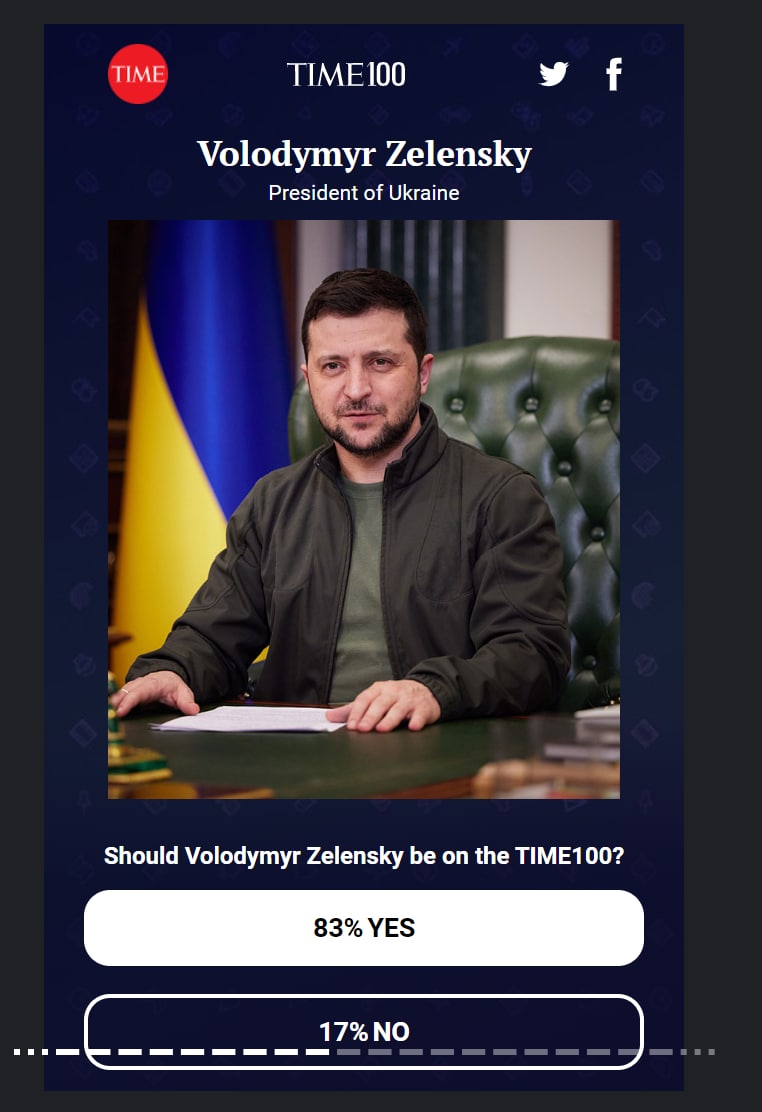 President Zelensky has already received 83% of the votes and is in the leading position!