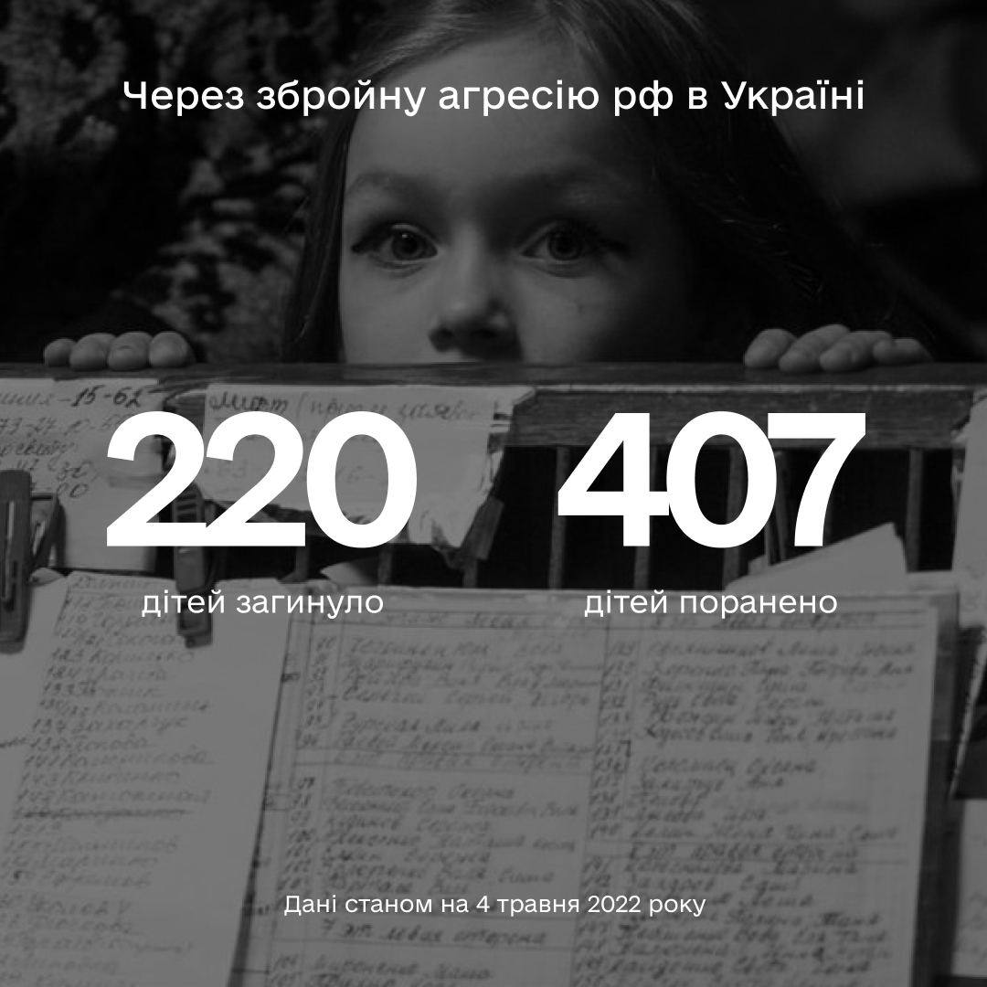 Some 620 children suffered at the hands of Russian murderers in Ukraine. 220 of them were killed.