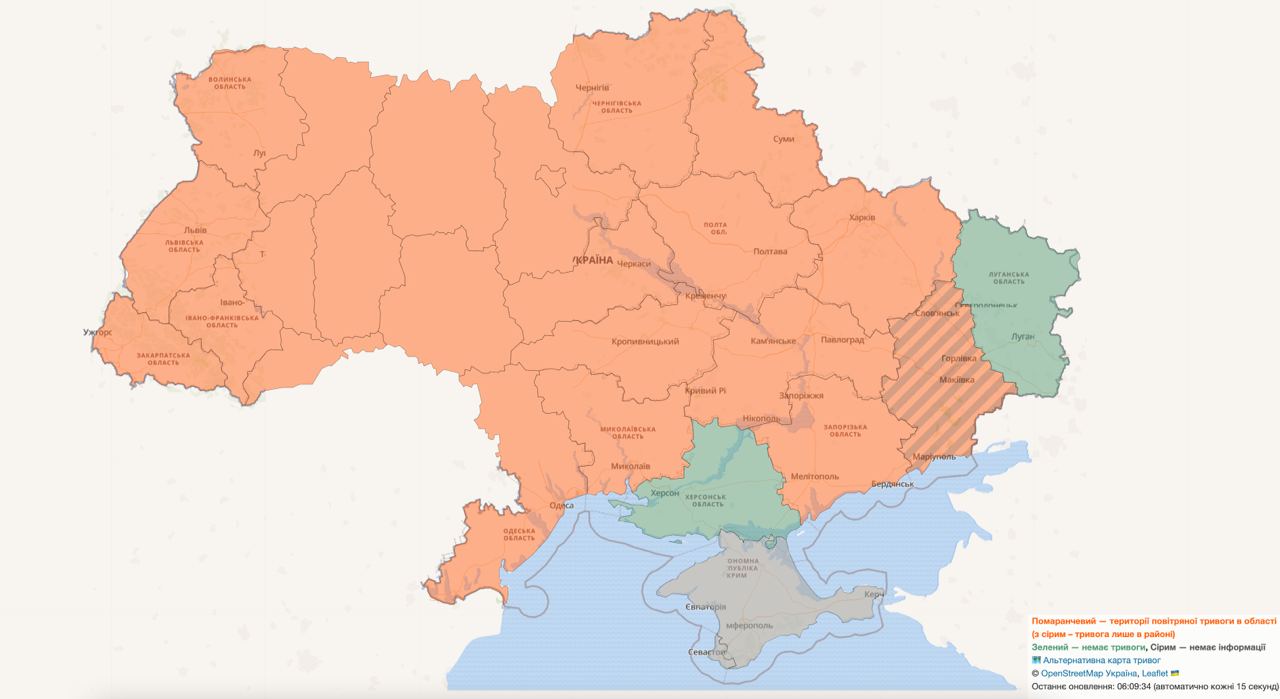 Also in many areas of Ukraine air alert. They write that there was a missile launch from the Black Sea. Take care.