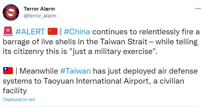 The Chinese army is also actively moving armored vehicles to Fujian province, the closest territory to Taiwan in mainland China.