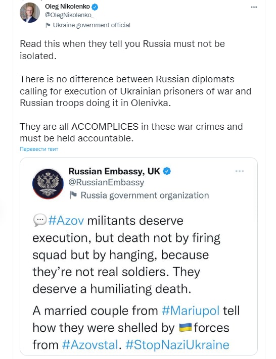 Every occupant who brutalizes Ukrainians, who coils and kills them, must know that there will be a price to pay. Even if any of the Russian killers think that they will not be held accountable, that they will be hanged, they should know that they will be held accountable at any rate. Geography, time, cordons and walls do not stop fair payment.