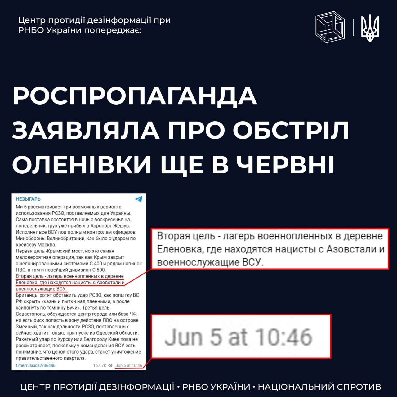 The occupants' strike on Yelenivka is a conscious war crime by the Russians, a conscious mass murder of Ukrainian prisoners of war. More than fifty dead...