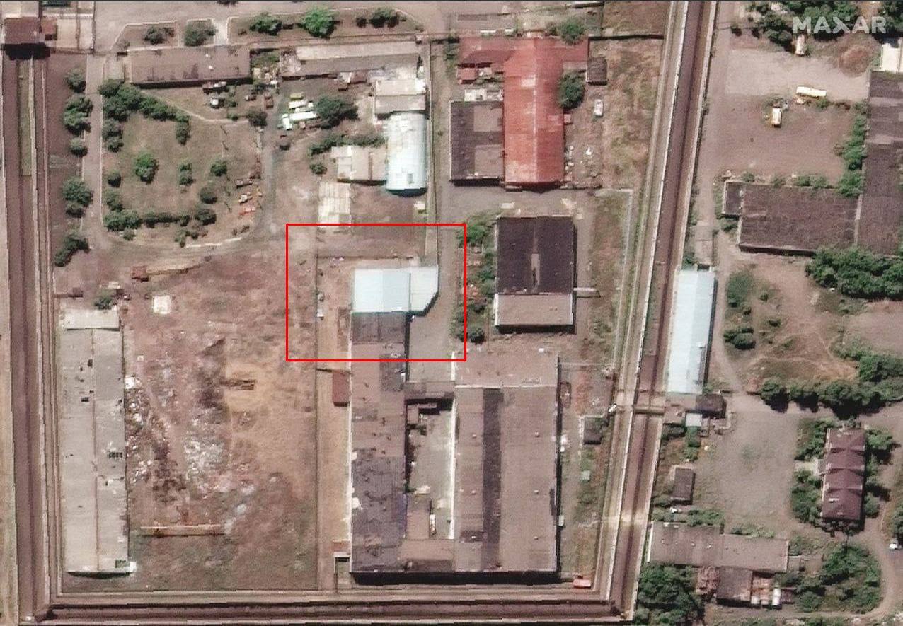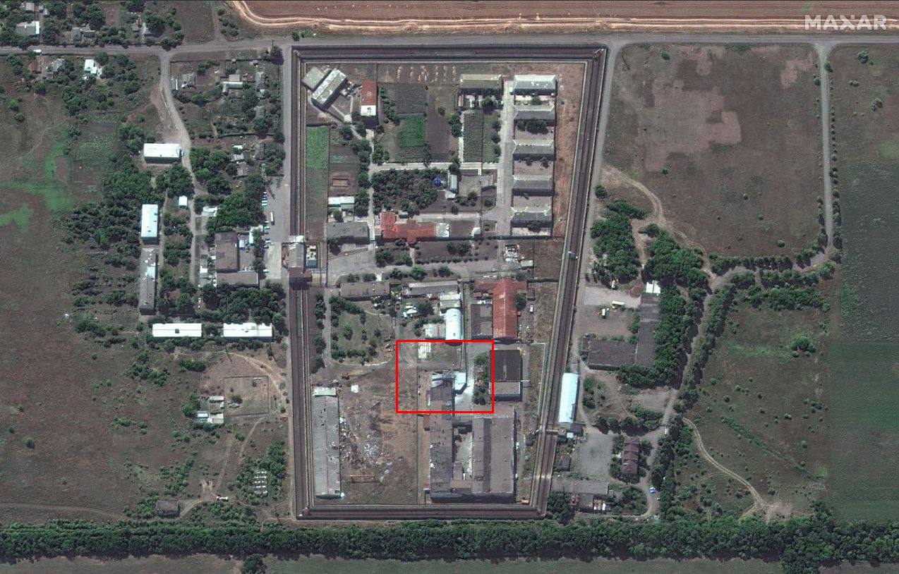 Satellite images of the colony in Yelenivka show that only one building was damaged there - with Azov fighters