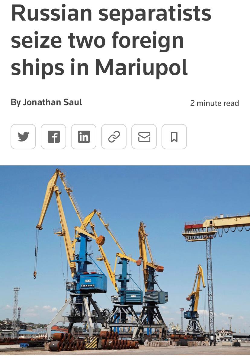 According to Reuters, Russian guerrillas seized two foreign vessels in temporarily occupied Mariupol and declared that they are now the "state property" of the so-called "DPR.