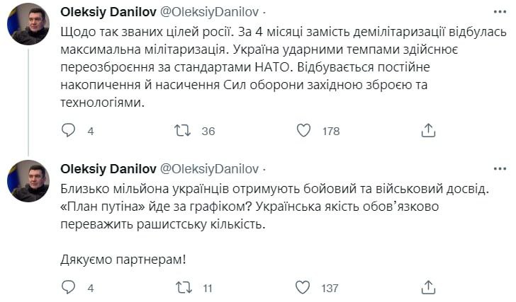 🔹 Secretary of the Russian Security Council Nikolai Patrushev reiterated Russian President Vladimir Putin's initial goals for a "special operation" in Ukraine, admitting that the Kremlin is maintaining its maximalist goals, including regime change and territorial expansion far beyond the Donbass.