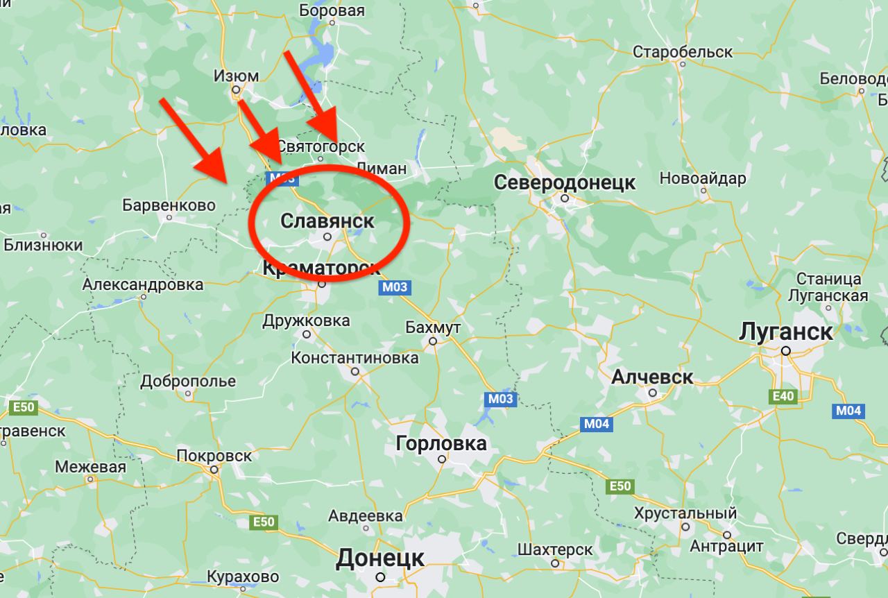 🔹 The Russian forces continued their offensive actions on the eastern side and south of Slovyansk.