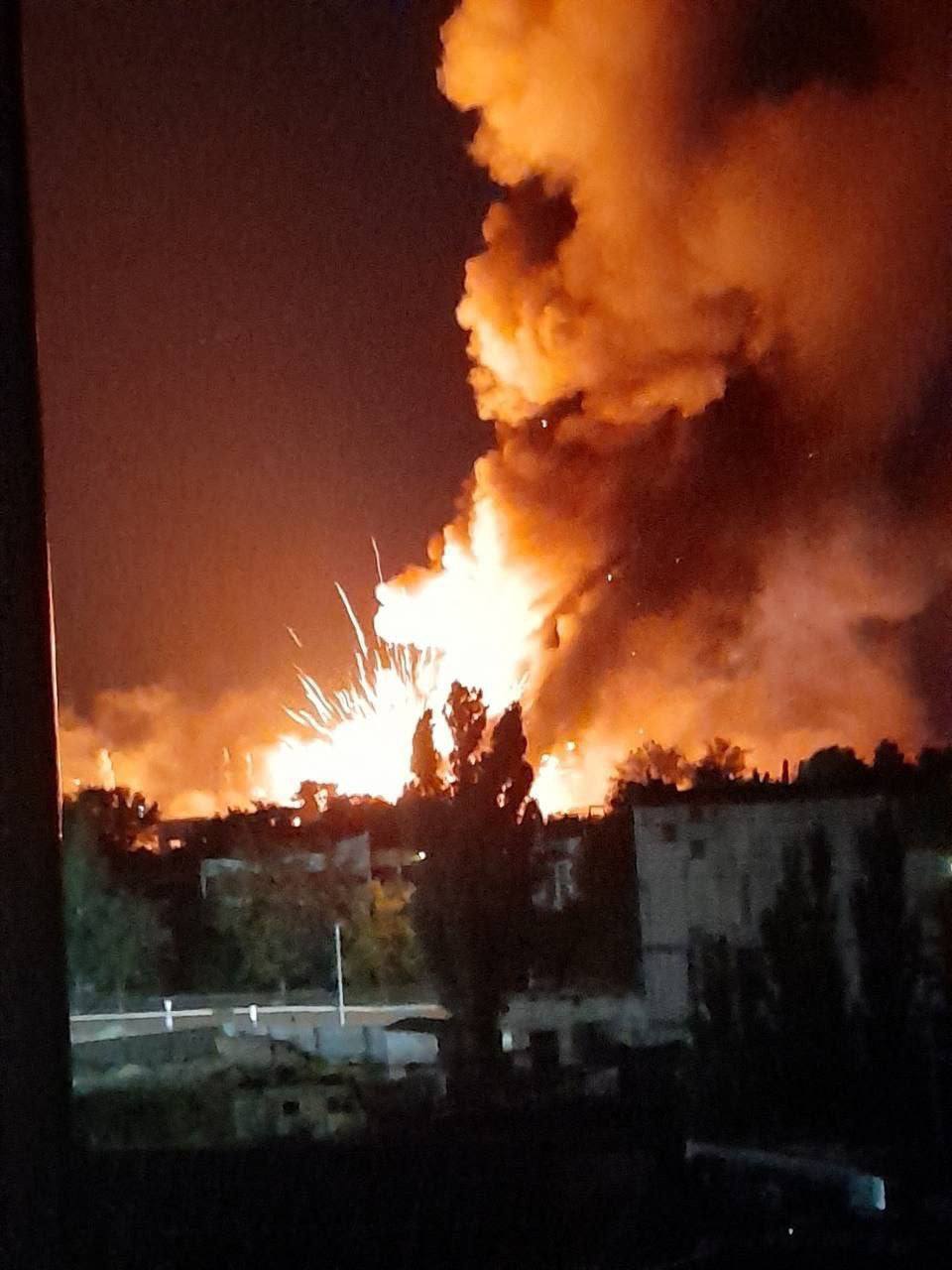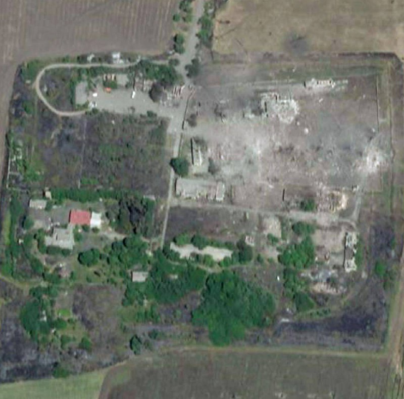 Locals reported hearing four to five hits in the area where the military unit and ammunition depot of the occupants are located.