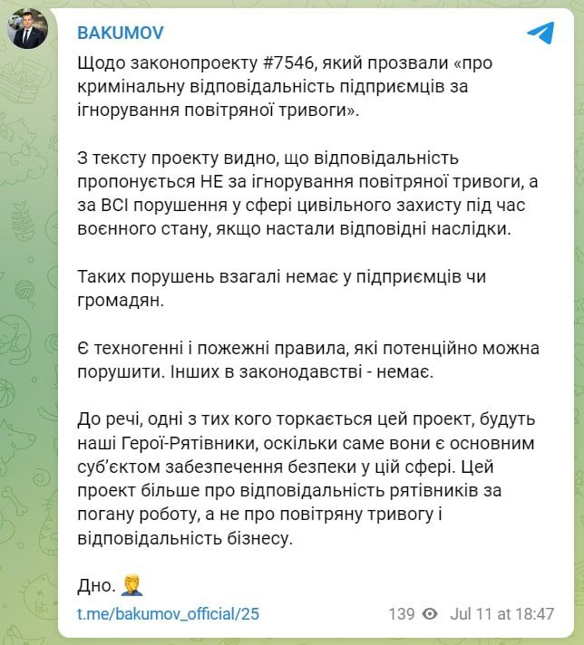 ⚡️Ignorance of air-raid alarms may be punished for businesses: a bill has been introduced in the Rada