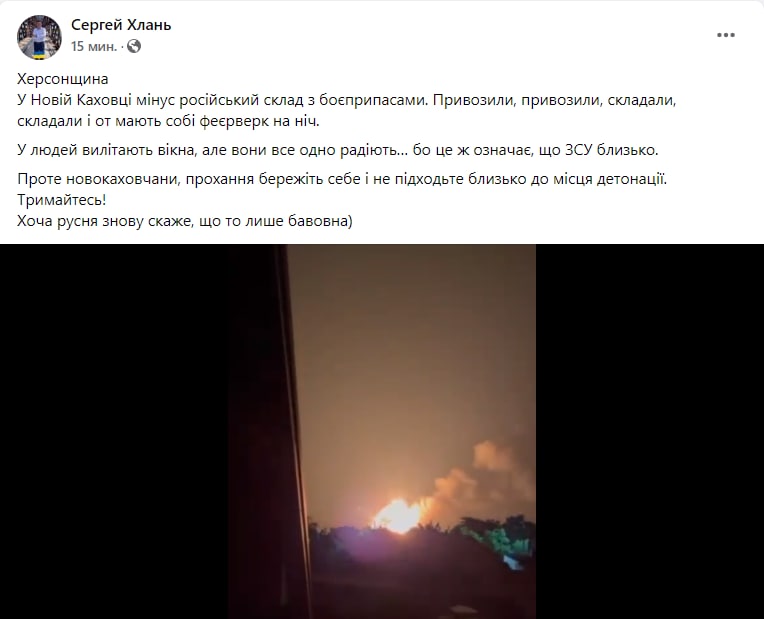 Demolition of the Katsapian ammunition depot today in the morning. Tokmak