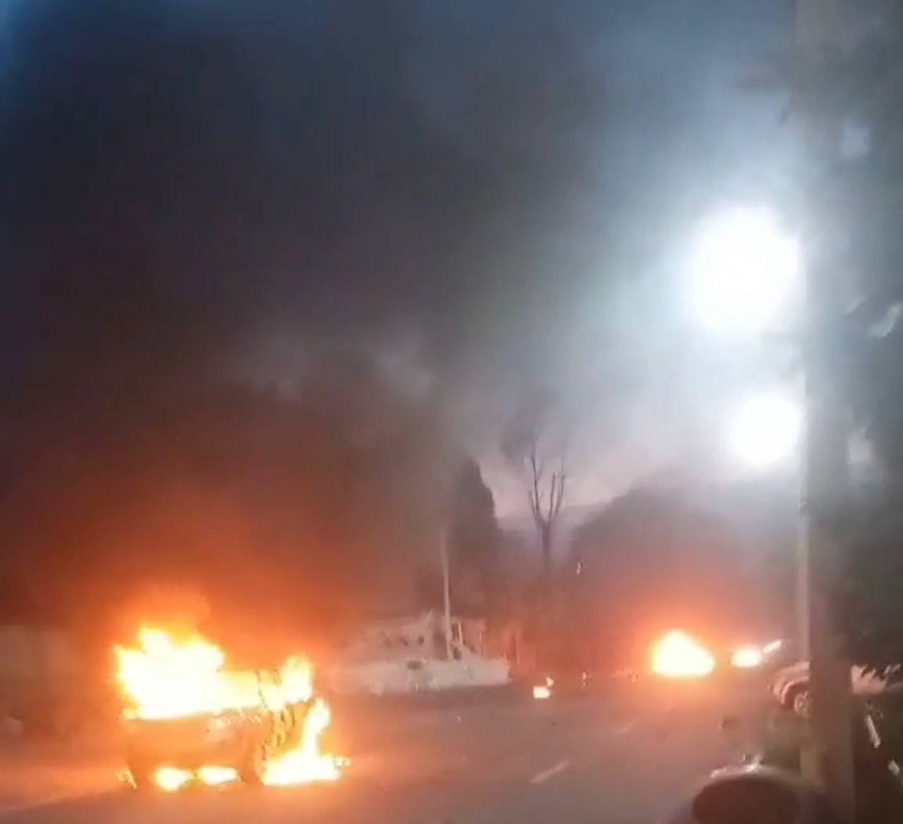 At least three cars are on fire, one of them had a burnt-out driver, no information about the others