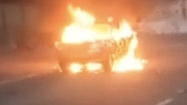After the missile attack in Dnipro, a car is on fire...
