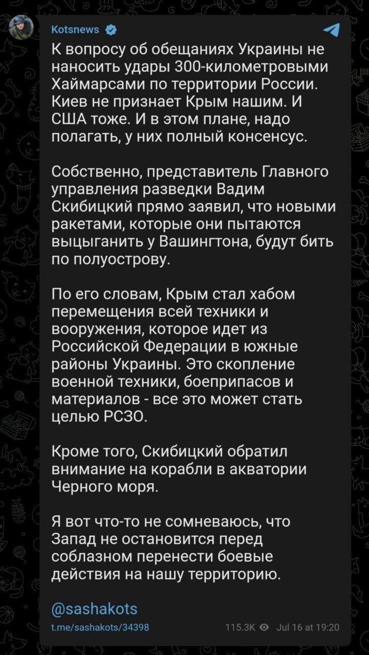☝️ HIMARS are not being delivered to the Crimea, but if Ukraine is provided with missiles with a range of 300 km, kilometers, it will be possible.