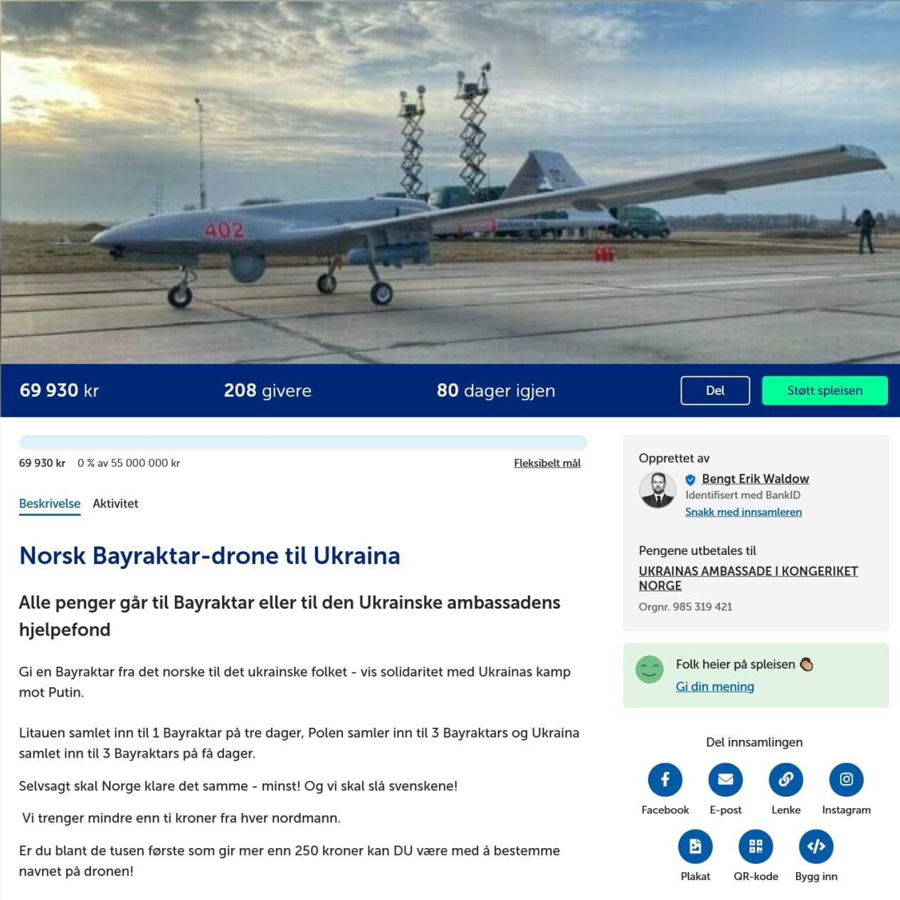 🇳🇴 🇺🇦Norway has joined the flash mob and started collecting for Bayraktar for Ukraine.