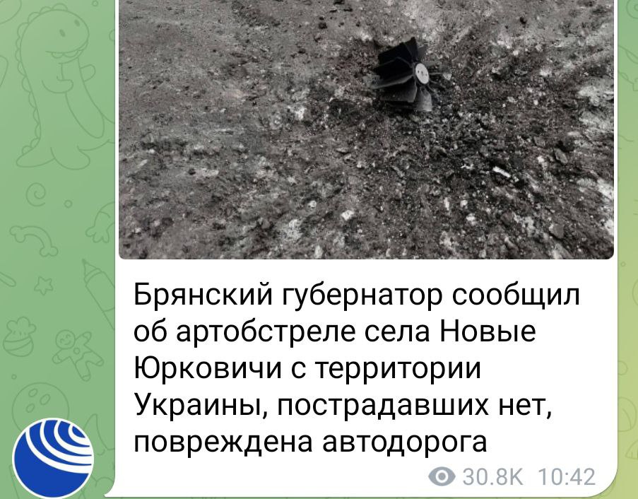 The Bryansk governor reported shelling of the village of Novye Yurkovichi from the territory of Ukraine, no casualties, the road was damaged