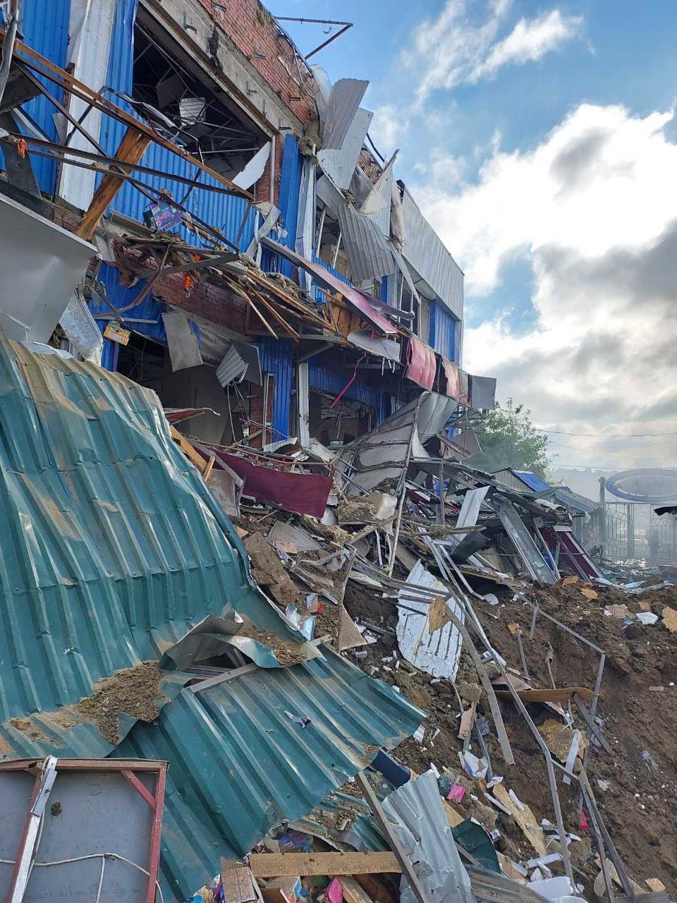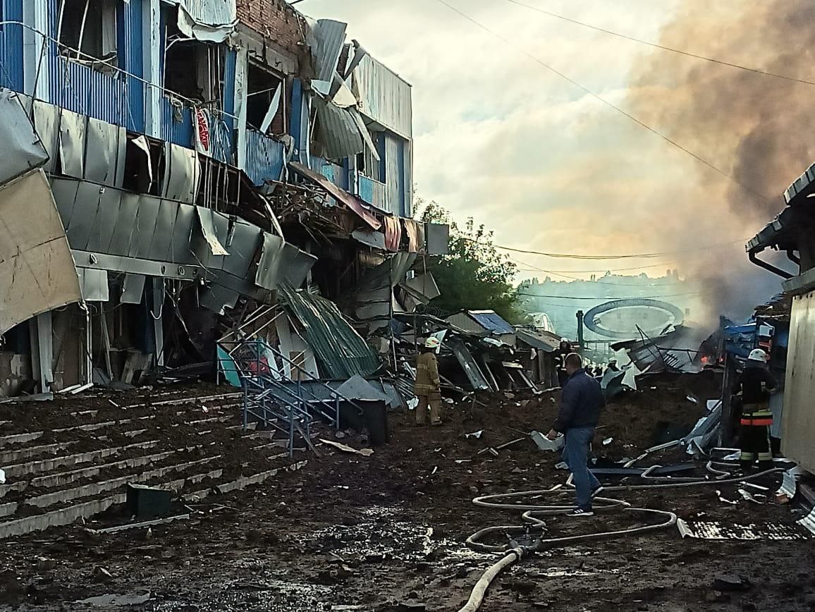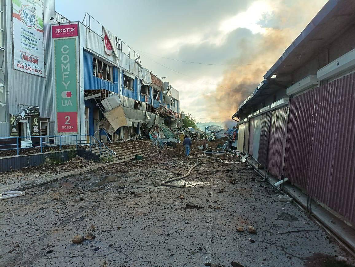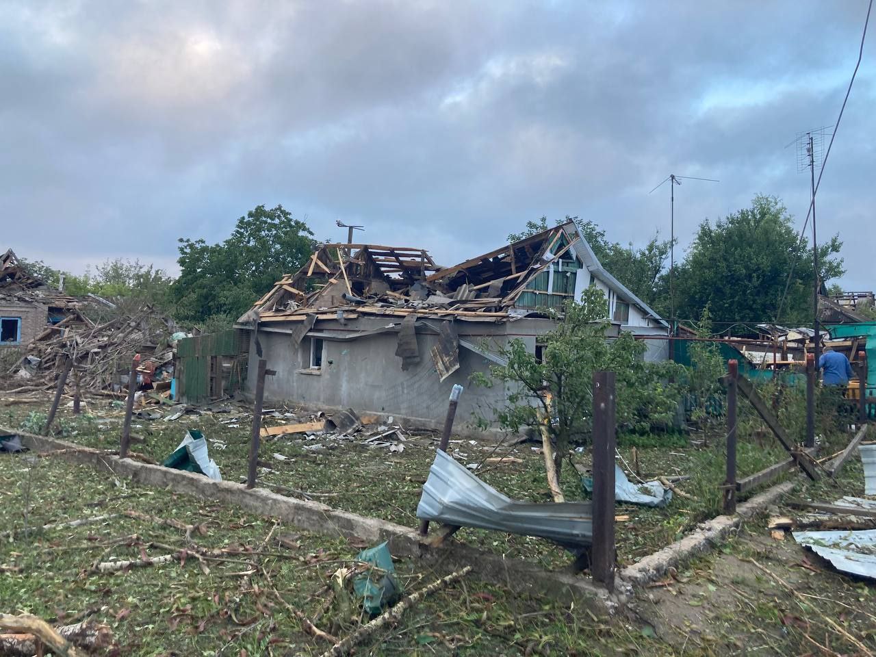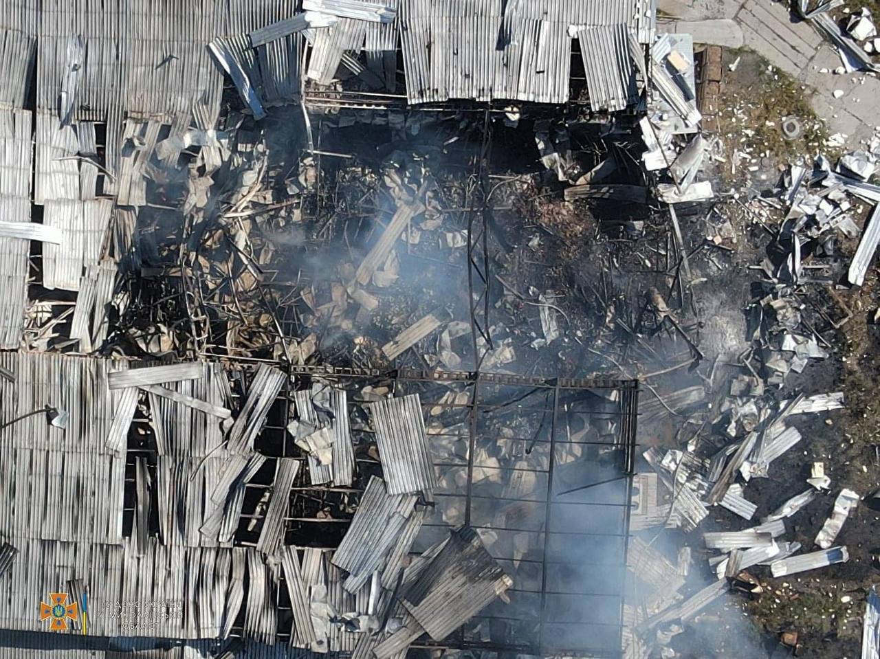 During the night the Russian occupants struck at the civilian population of the Chuguyvsky district. Among the demolished was a part of the building of a communal enterprise. There were no casualties in the past.