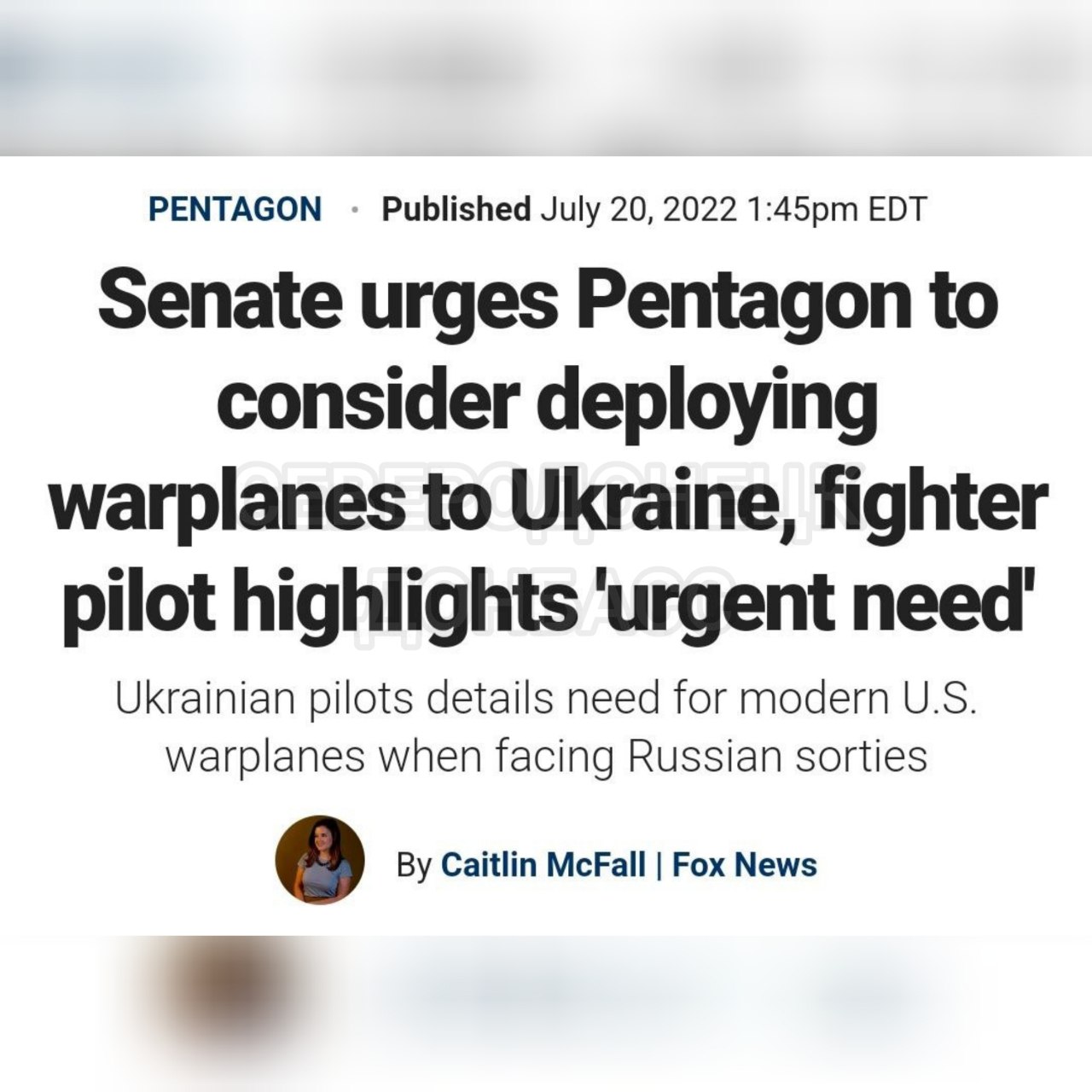 The U.S. Senate has urged the Pentagon to consider the inclusion of frontline military aid packages for Ukraine. The list of a bipartisan group of six senators was sent to Secretary of Defense Lloyd Austin and Chairman of the Joint Chiefs of Staff Mark Milli, Fox News reported.