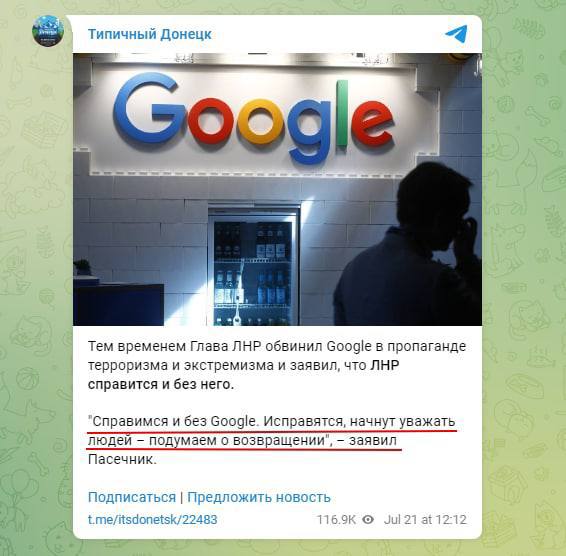 They said that "Western Internet platforms are like rocket launchers, only - informational," and that "Google is becoming the main weapon.