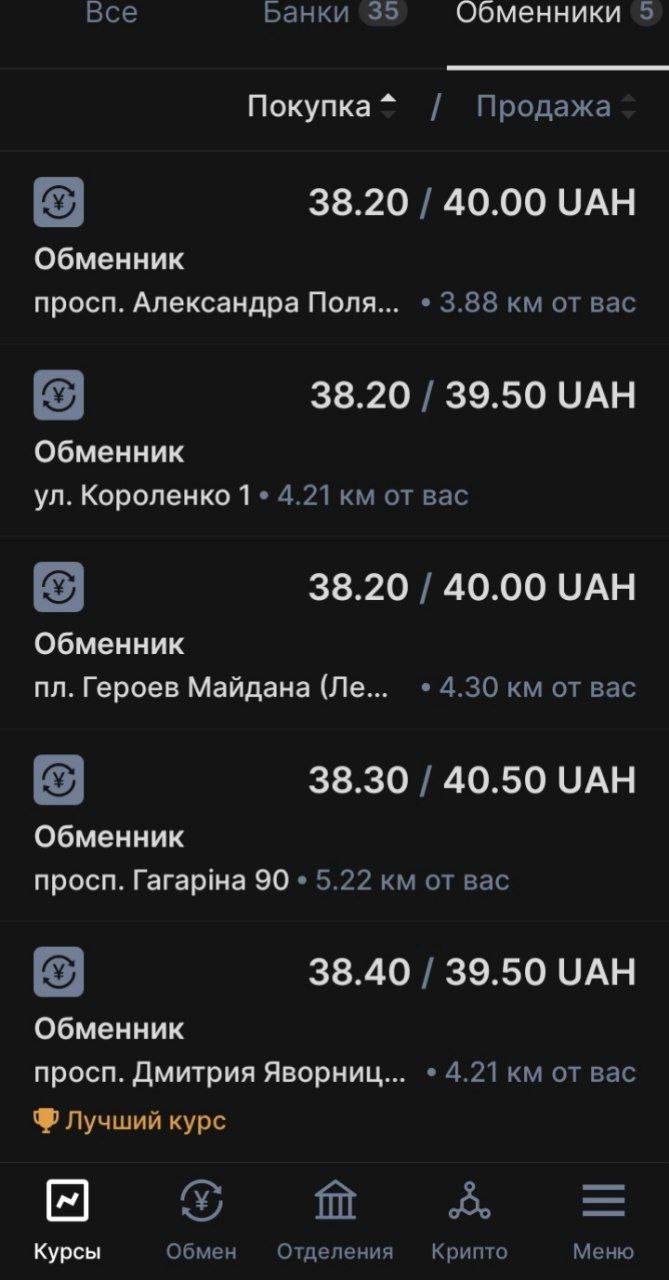 Exchange rates in the exchangers today looks like this.