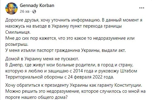 ❗️Gennady Korban commented on the incident at the border, as a result of which his passport was taken away.