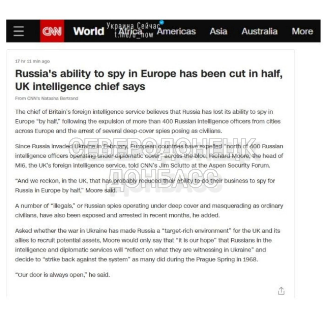 🔵🟡 Russia lost half of its spies in Europe, - Head of MI6 Richard Moore