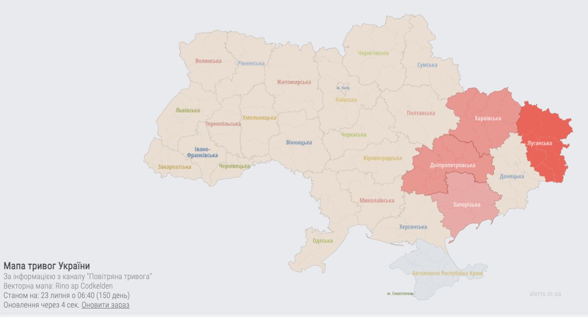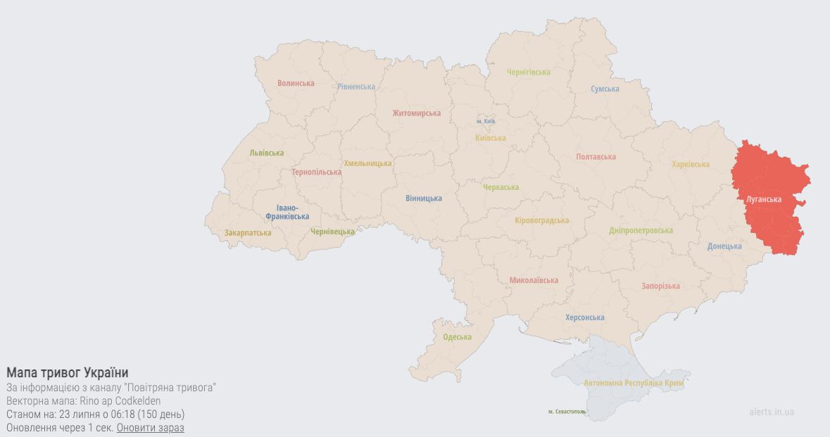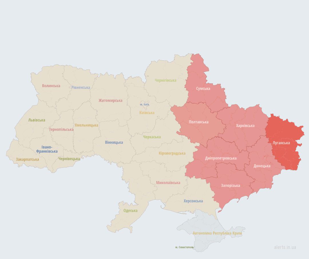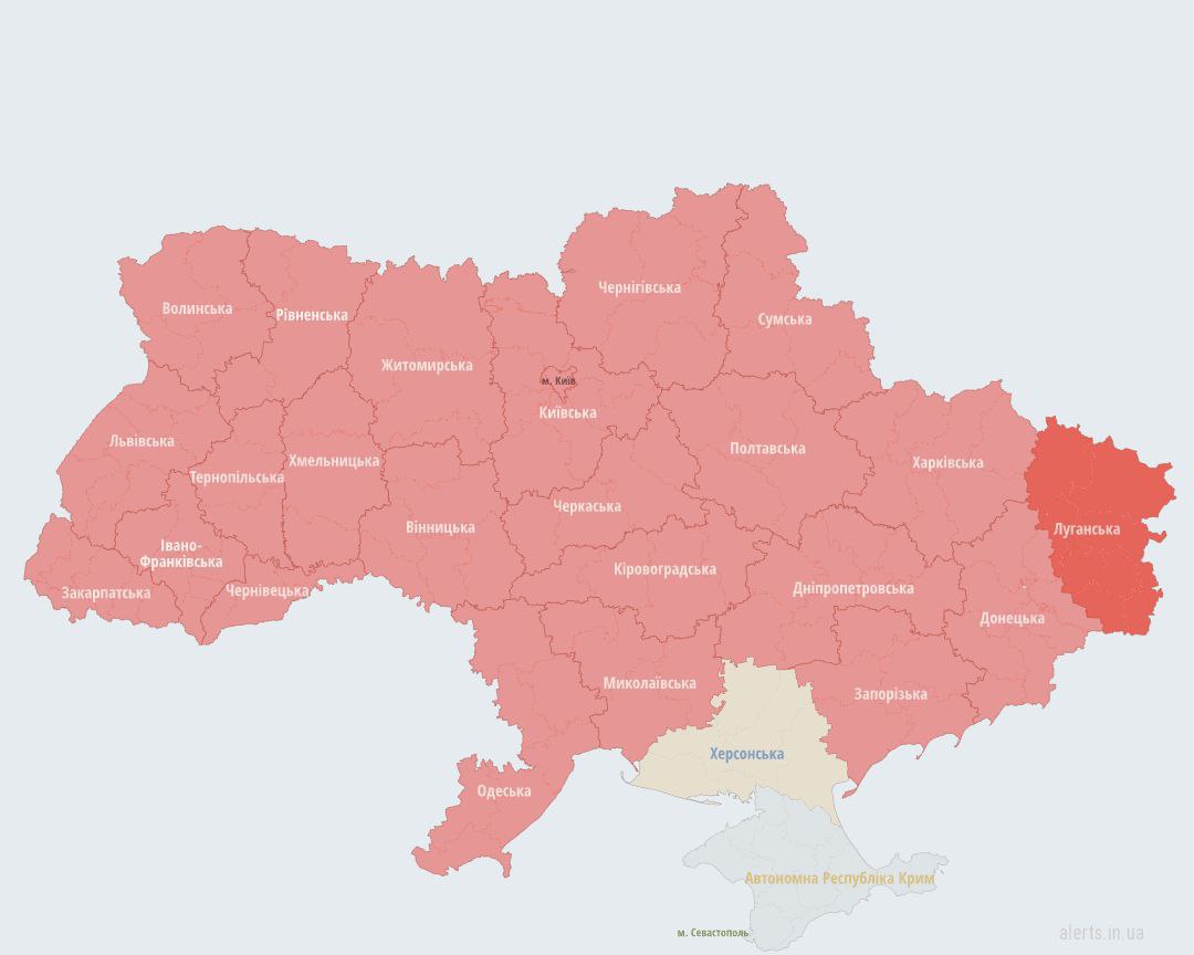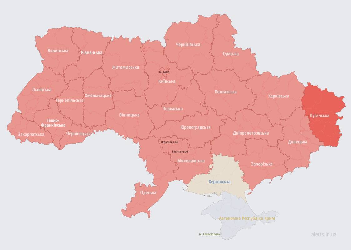 Alarm throughout Ukraine, except for Kherson region and Crimea - stay in safe places