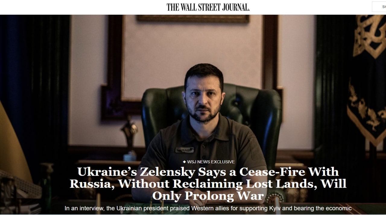He (Putin) came here without speaking, killed people, displaced 12 million people, and now he says that Ukraine does not want to negotiate," Ukrainian President Volodymyr Zelensky told The Wall Street Journal.