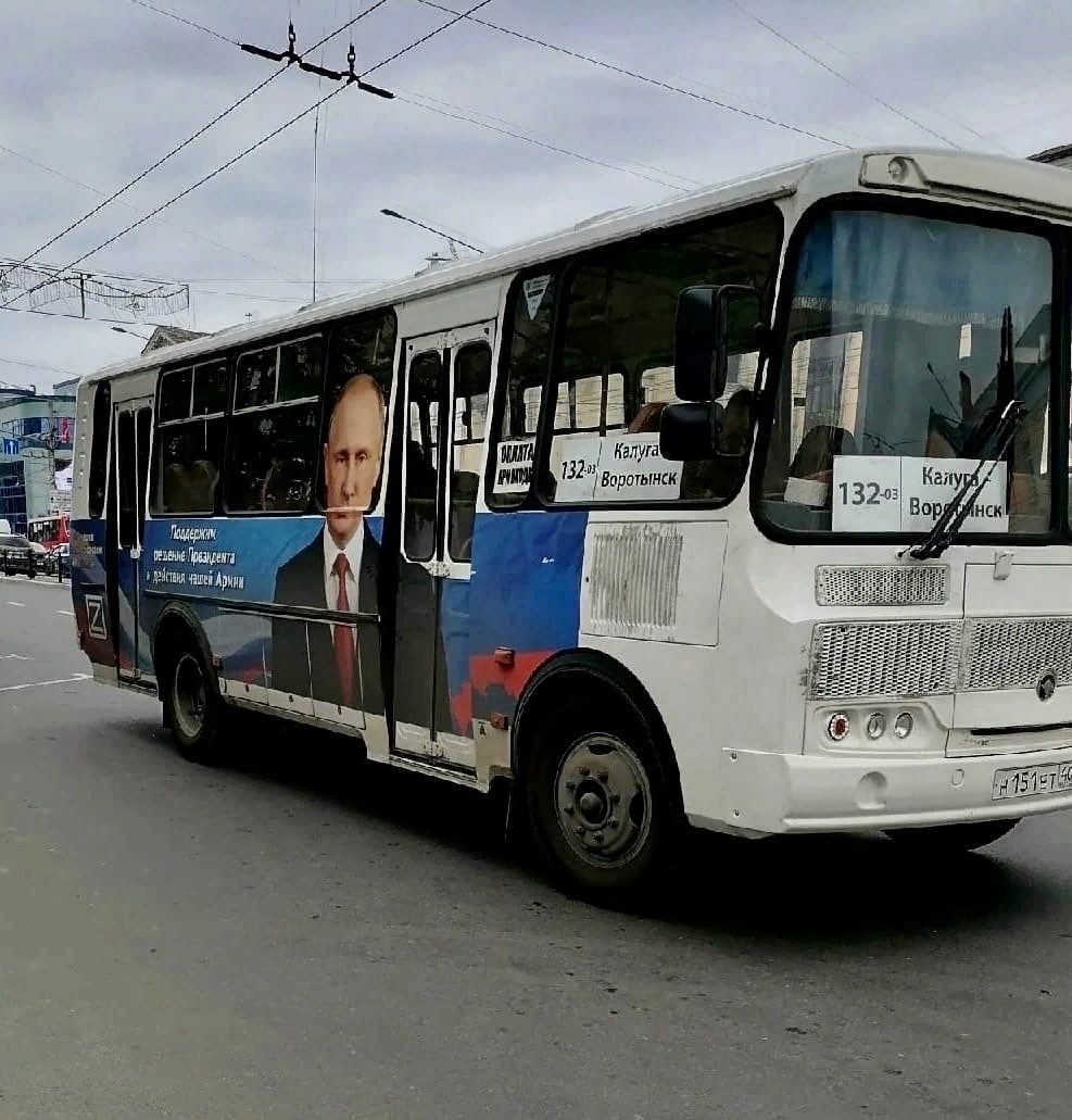 The PAZik, covered with Putin's stickers along the Kaluga-Vorotynsk route, now runs between Kaluga and Vorotynsk.