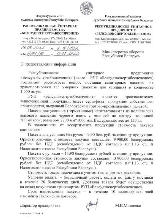 🤔 Belarus plans to purchase one thousand bags for transporting corpses.