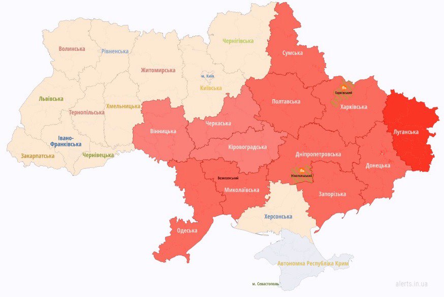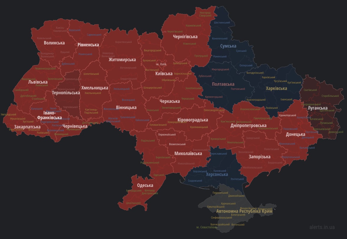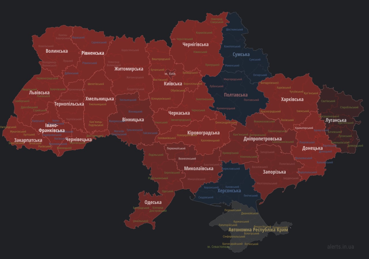 ❗️ An air-raid alert has been declared in many regions of Ukraine.