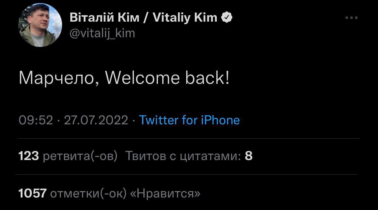 Major General Dmytro Marchenko, who was in charge of the defense of Mykolaiv until April, is returning to the city, the Mykolaiv military administration said.