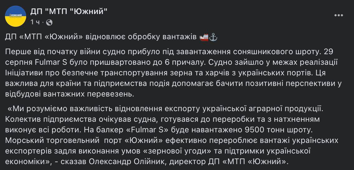 This was reported by the Operational Command "Pivdennyi".
