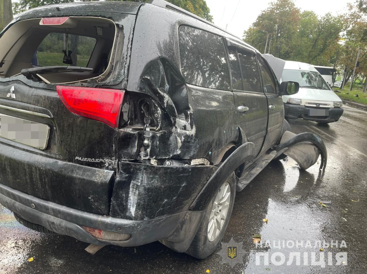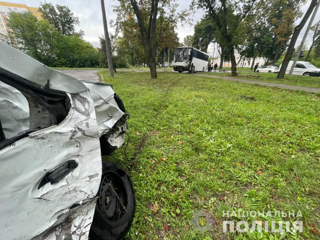 According to the preliminary information, the bus ran into a Moskvich. The back part of the car is dented. It happened at the intersection of Petr Grigorenko and Tankopiy.