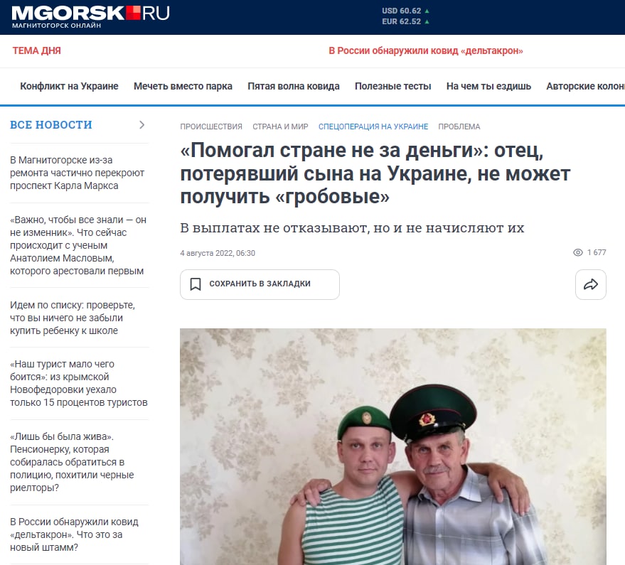 Well, in the title of the article it is written that "he helped without any payment", so how can it be "coffins"? The Russian authorities have not paid coffins to the relatives of the dead fascist for three months now. There are a lot of interesting phrases in the article, for example: "Cargoes 200 go on and on, and nobody cares".