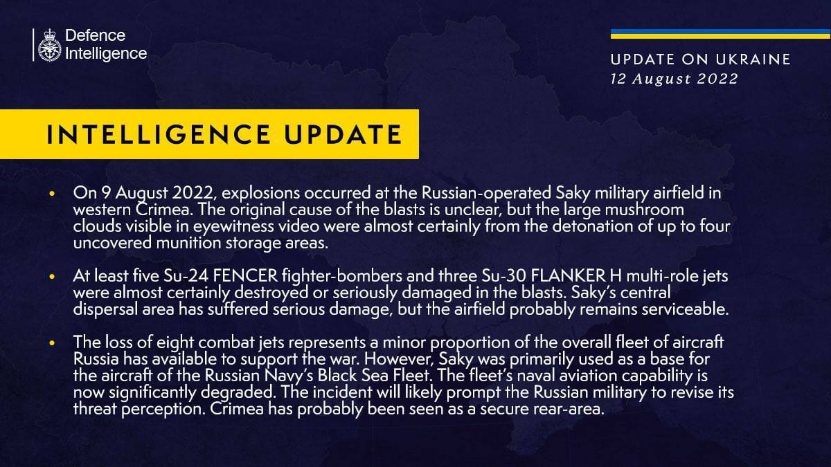 Before the explosions, the Russian aviation equipment worth $650m to $850m was located there.