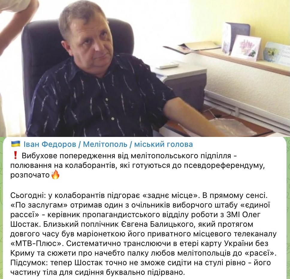 "Everything is in the traditions of the 30s of the USSR. For people it is much more frightening not the sound of the lulls when ZSU are working, but the noise of the engine of the military Ural, barking with a Russian accent in their backyard and thoughts on what they came for this time. Stay strong, friends, the CSU is near!", - said Yuriy Sobolevsky.