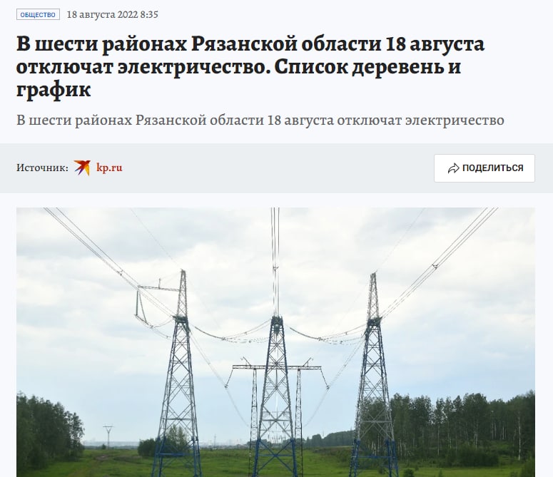 In continuation of the topic of the previous article about the Ryazan region. The Ryazan regional section of Komsomolskaya Pravda announces power outages in 6 districts of the Ryazan region.