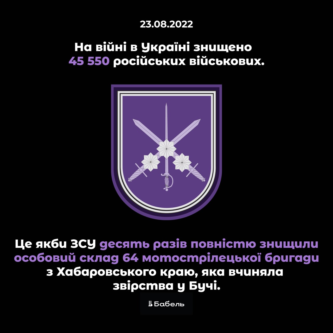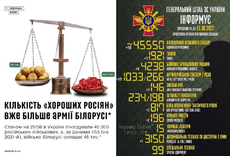 To date, we already know about 45 550 dead Russians, while the Belarusian army has only 45 thousand soldiers (as of 2021).