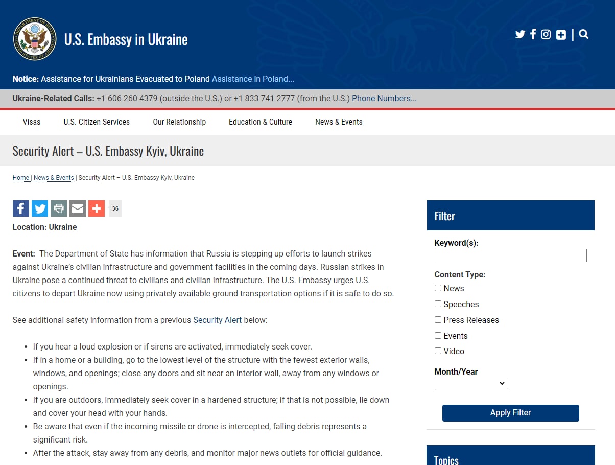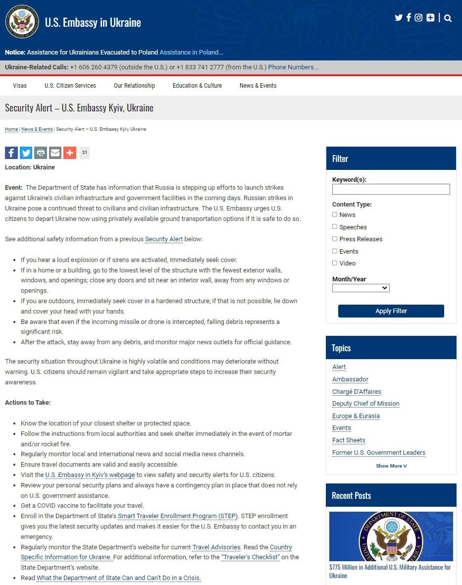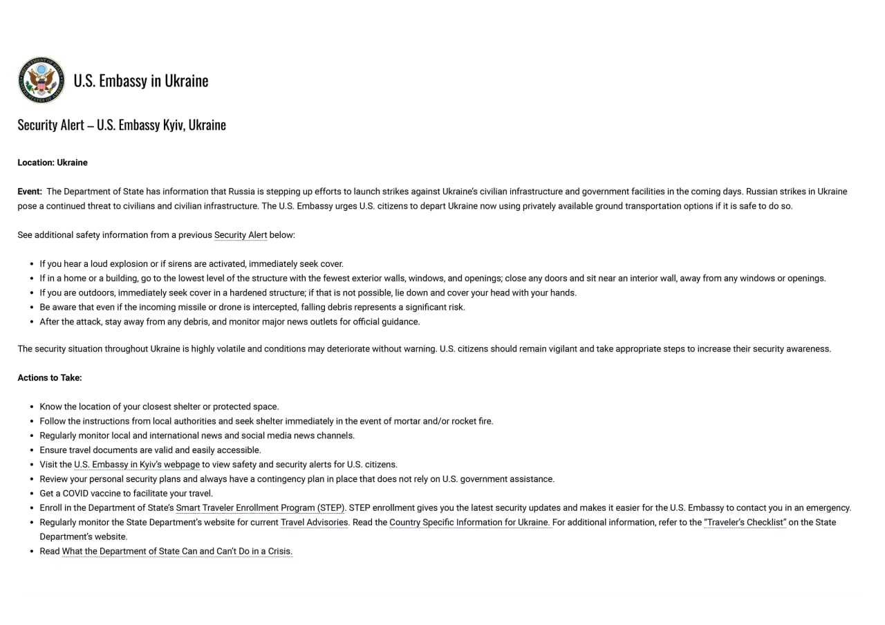 ❗️The U.S. Embassy urged its citizens to leave Ukraine.