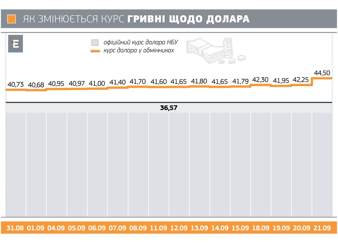 The exchange rate in Ukraine reacted to the announcement of mobilization in the Russian Federation and reached 43-44 UAH per dollar