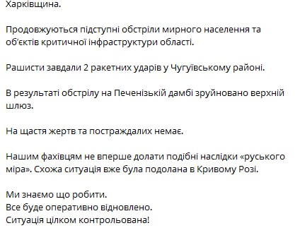 Preliminary, it is known that missiles hit infrastructure facilities.