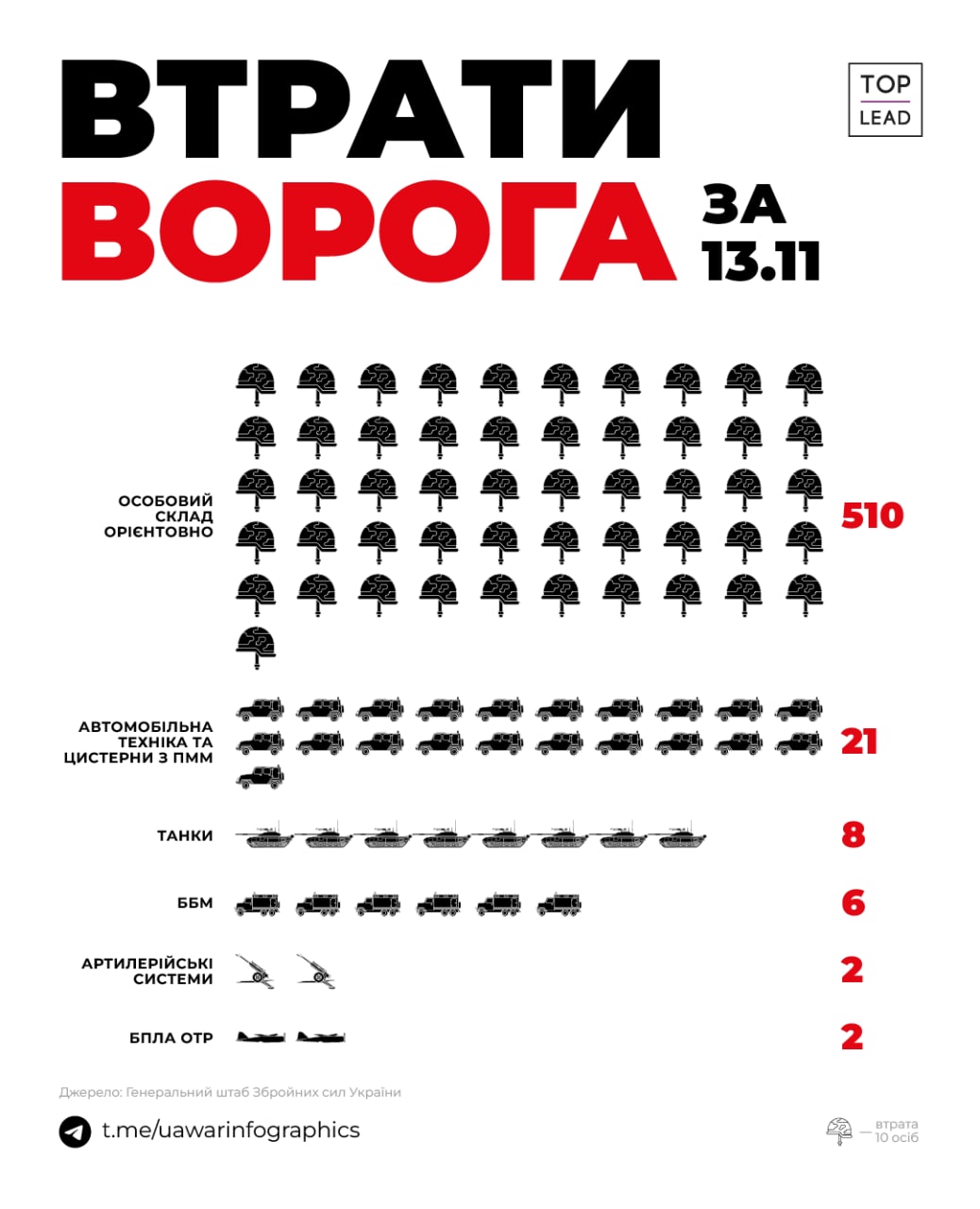 Загальні бойові втрати противника з 24.02 по 14.11 орієнтовно склали: