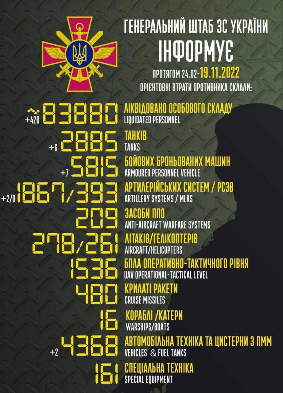 Total combat losses of Katsaps as of 19.11.2022