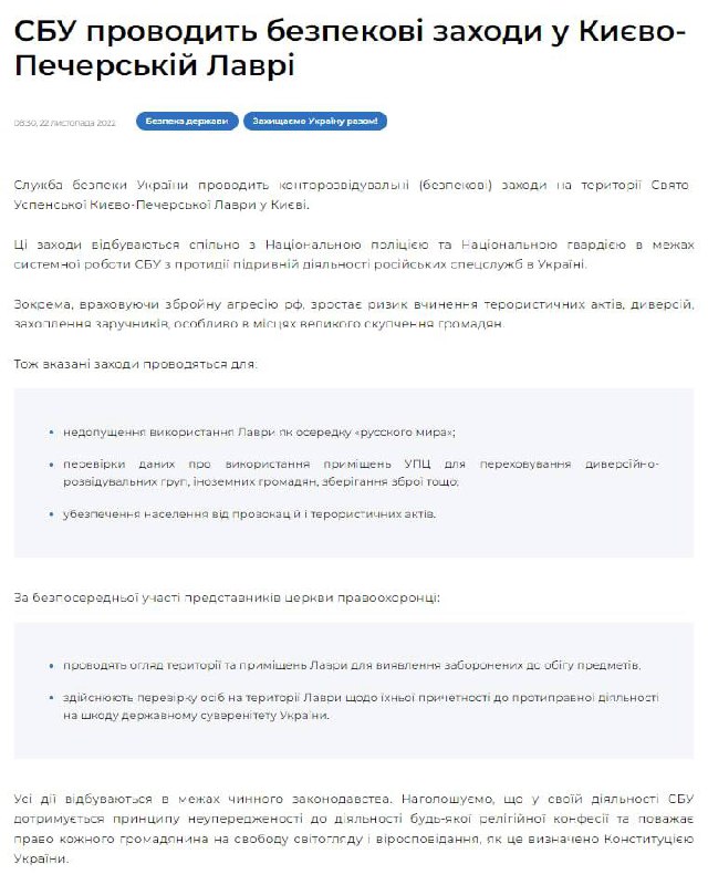 🤡 Об обысках в Киево-Печерской лавре: «Это нужно рассматривать как очередное звено в цепи этих военных действий против русского православия».
