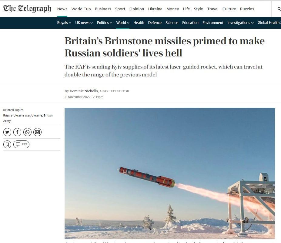 The UK has supplied Ukraine with upgraded Brimstone 2 precision-guided missiles, which have three times the range of the first generation Brimstone missiles - The Daily Telegraph.
