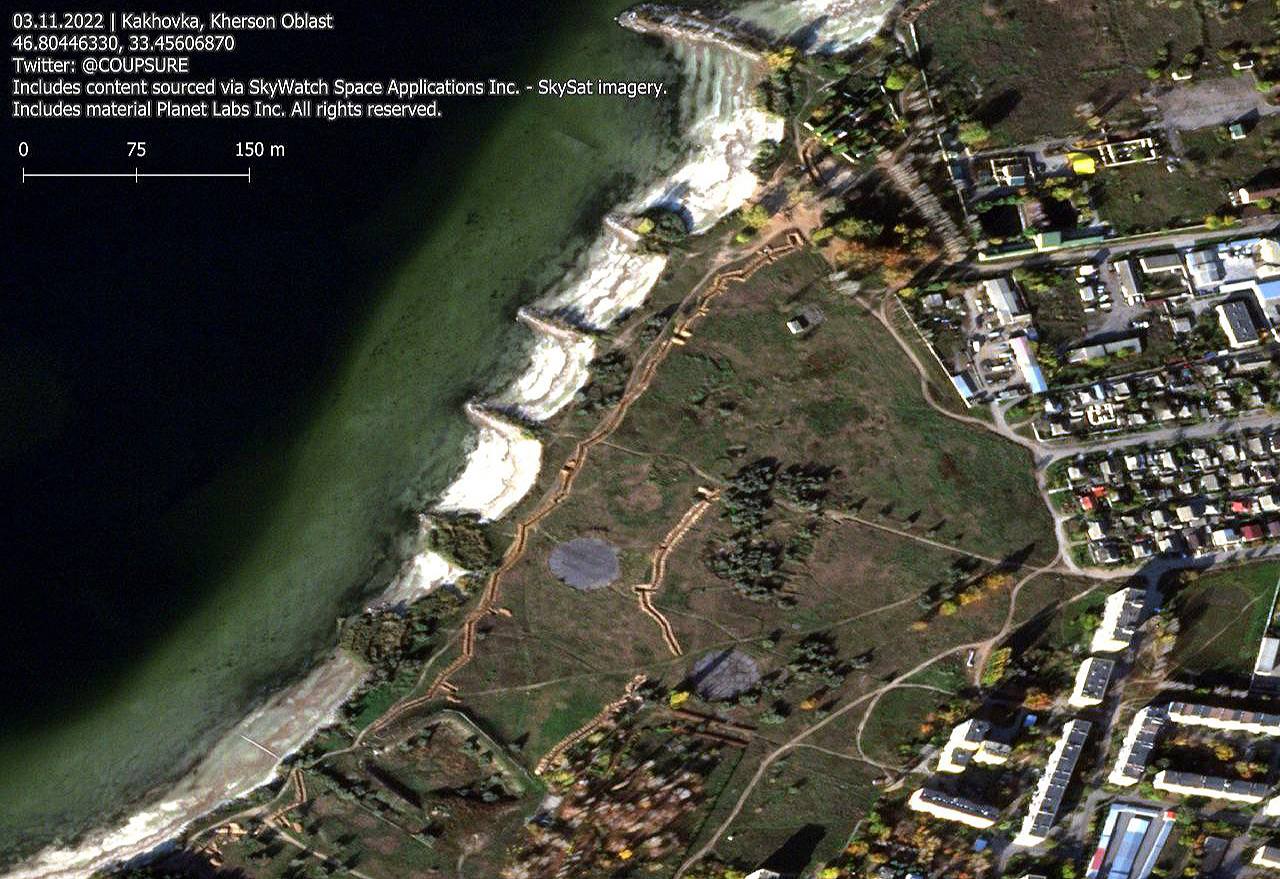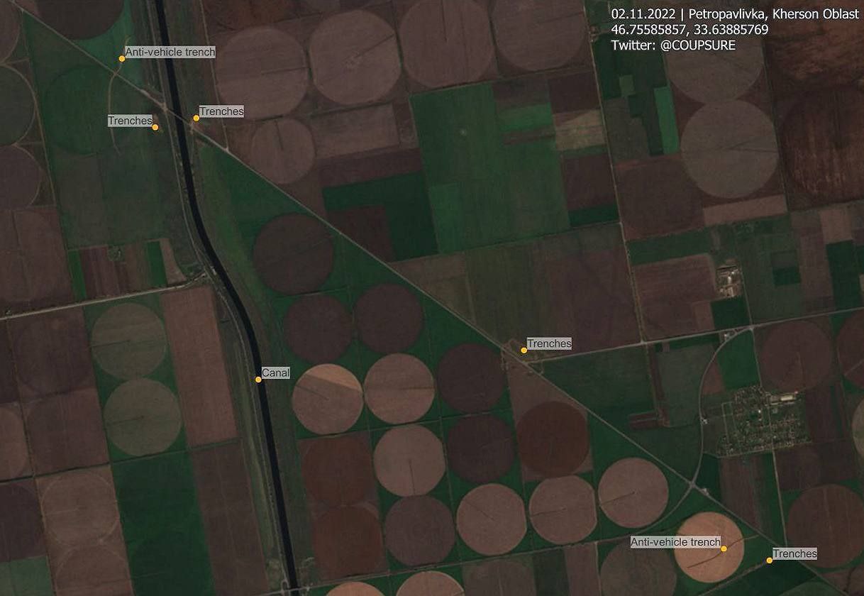 Russia is preparing to defend the right bank of the Dnieper River in Kherson, - OSINT analyst Benjamin Pittet with reference to satellite images in that area