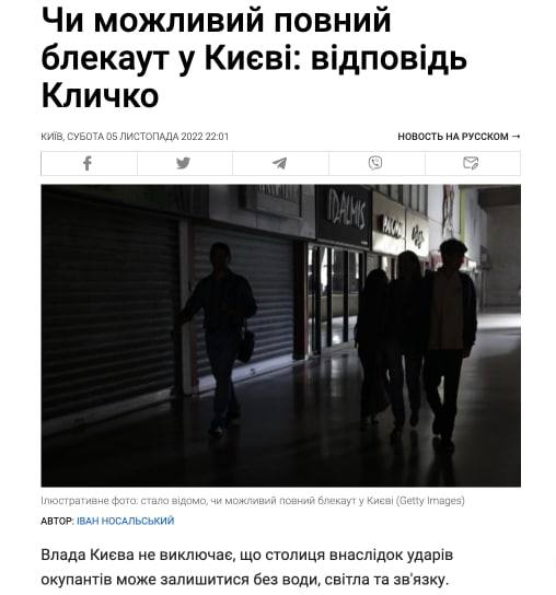 ⚡️ It is possible that Russian shelling could cause Kiev to plunge into a total blackout and remain without water, light, and communications