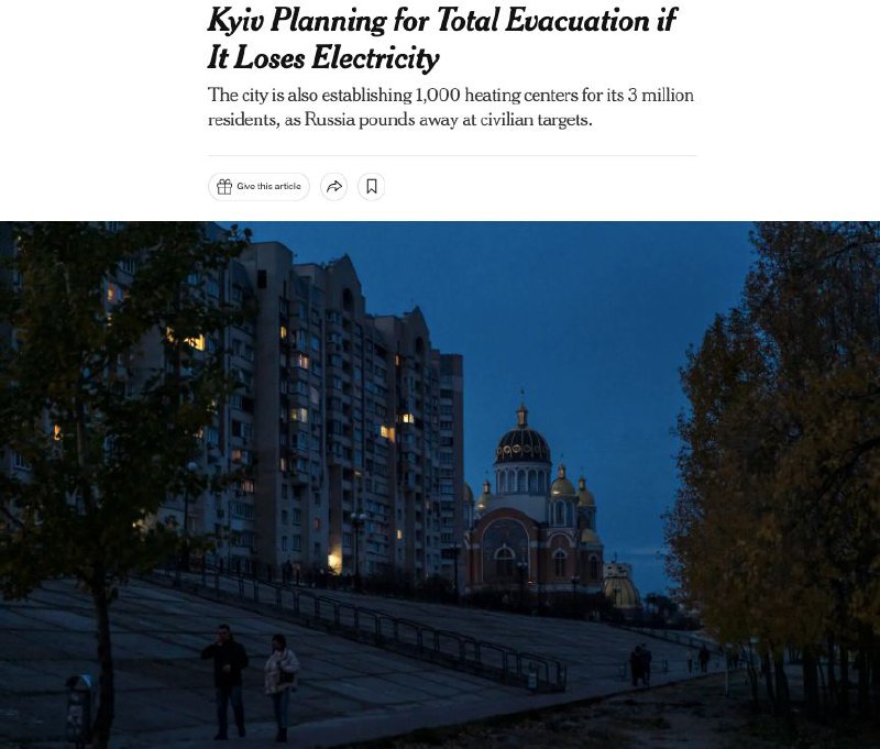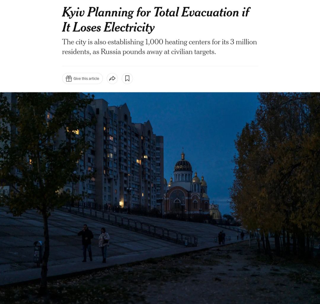 ⚡️Не исключено, что из-за российских обстрелов Киев может окунуться в полный блэкаут и остаться без воды, света и связи