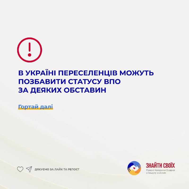 ❗️В Україні переселенців можуть позбавити статусу ВПО за деяких обставин❗️