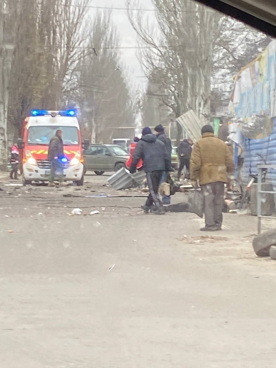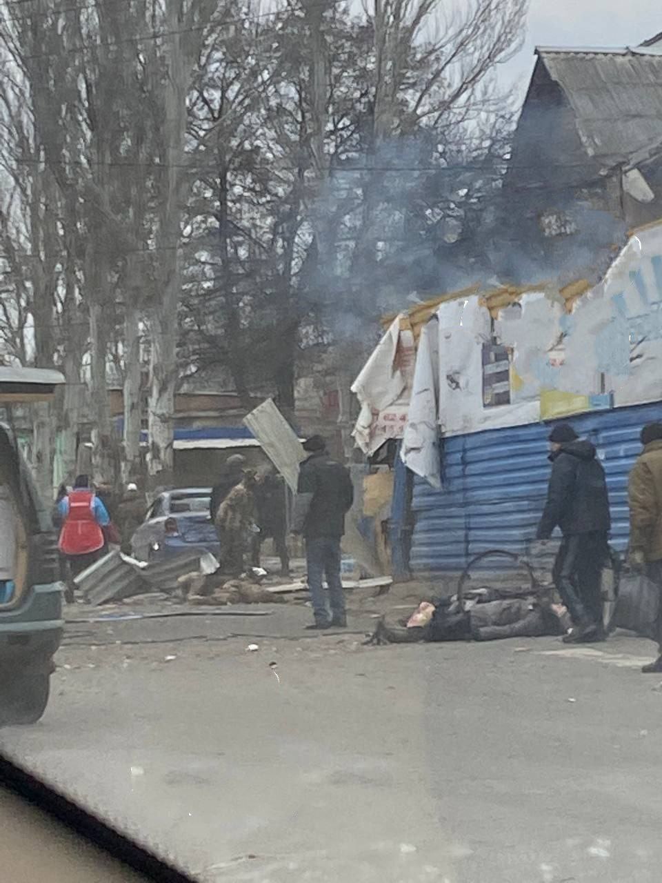 Саме в той час на тому місці люди отримували гуманітарну допомогу.
