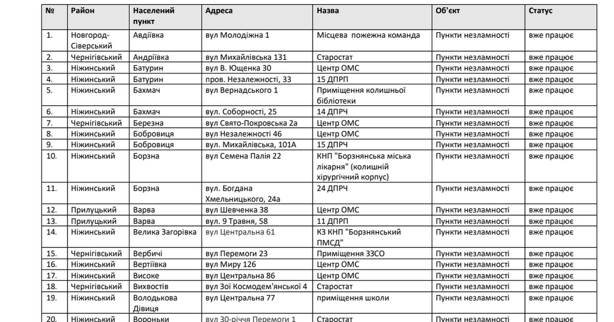 📝 The list of points in Chernihiv region can be found here. It can also be downloaded here: http://bit.ly/3Fp1EoL